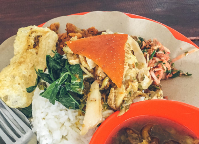 Nasi Padang There are many Nasi Padang restaurants in Seminyak and across Bali, it’s the local go-to, staple meal for every day. You get to choose from a display of 15-20 pre-cook dishes, served over rice and some chili. Pondok Duo is a chain, while not necessarily the “best” per se but they are more visually approachable for first-timers, it is common to see flies around these restaurants for the dishes are prepared in advance.Warung Bu Ani Banyuwangi