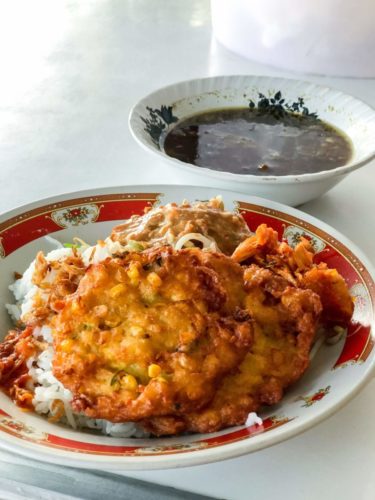 Nasi Campur My go-to lunch spot, like to Pondok Duo, dishes are prepared in advance and Balinese hygiene standards differ from what many foreigners expect but the food is by no means soiled, in fact, the food is amazing, they make the best corn fritters and gravied banana blossom. The eatery is packed during lunch, and food runs out by the early afternoon, now the secret is out.Tasty Vegan